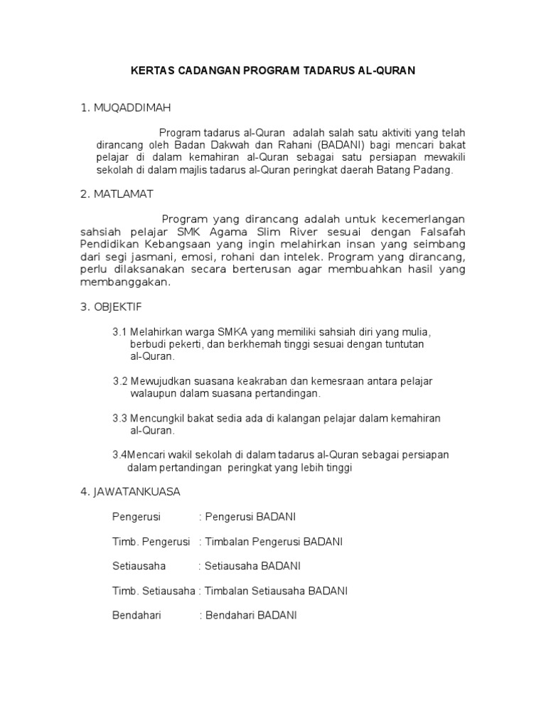 Contoh Kertas Kerja Program Al Quran By fu_Scarlett75 06 Jul, 2022 Post a Comment Kertas Kerja Khatam Al Quran Membalik Buku Halaman 1 8 Anyflip Kertas Kerja Khatam Al Quran Nadeya Sofeya Membalik Pdf Dalam Talian Anyflip Kertas Kerja Tahsin Alquran Pdf Contoh Kertas Kerja Khatam Quran Pdf Kertas Kerja Majlis Tadarus Al Quran Pdf Share No comments for "Contoh Kertas Kerja Program Al Quran"